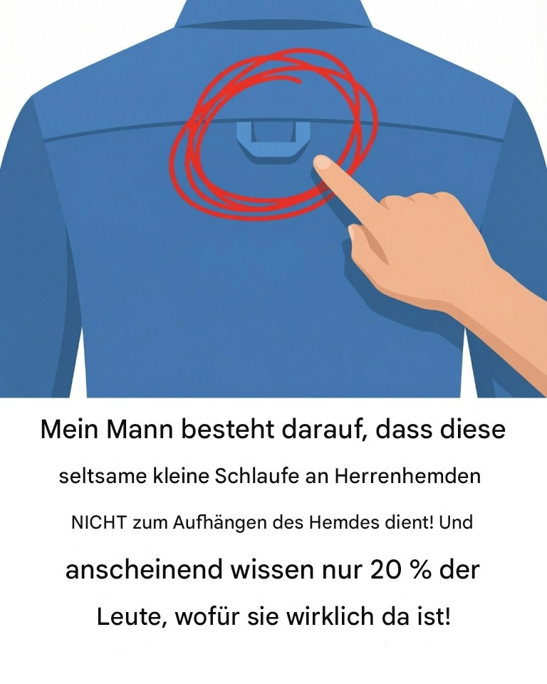 Sie kennen das bestimmt: Ein schmaler Stoffstreifen, der im Nacken, direkt unter dem Kragen mancher Hemden, sanft entlangschrammt. Vielleicht ist er Ihnen noch nie aufgefallen. Doch bei genauerem Hinsehen entdecken Sie eine kleine, unauffällige Schlaufe, die in die Passe eingenäht ist. Sie ist so dezent, dass viele sie jahrelang nicht bemerken – so auch mein Mann, der seine Hemden mit ehrlicher Überraschung betrachtete, als ich sie ihm zeigte.